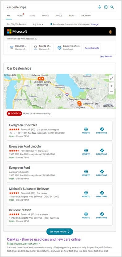 Finally, we have an update that enhances location extensions with a new ad experience that’ll run on the local results entity on Bing’s search engine results page as well as Bing Maps on PC: Local Search Ads. This will provide your business location and details in more places and with greater prominence than your competitors.
